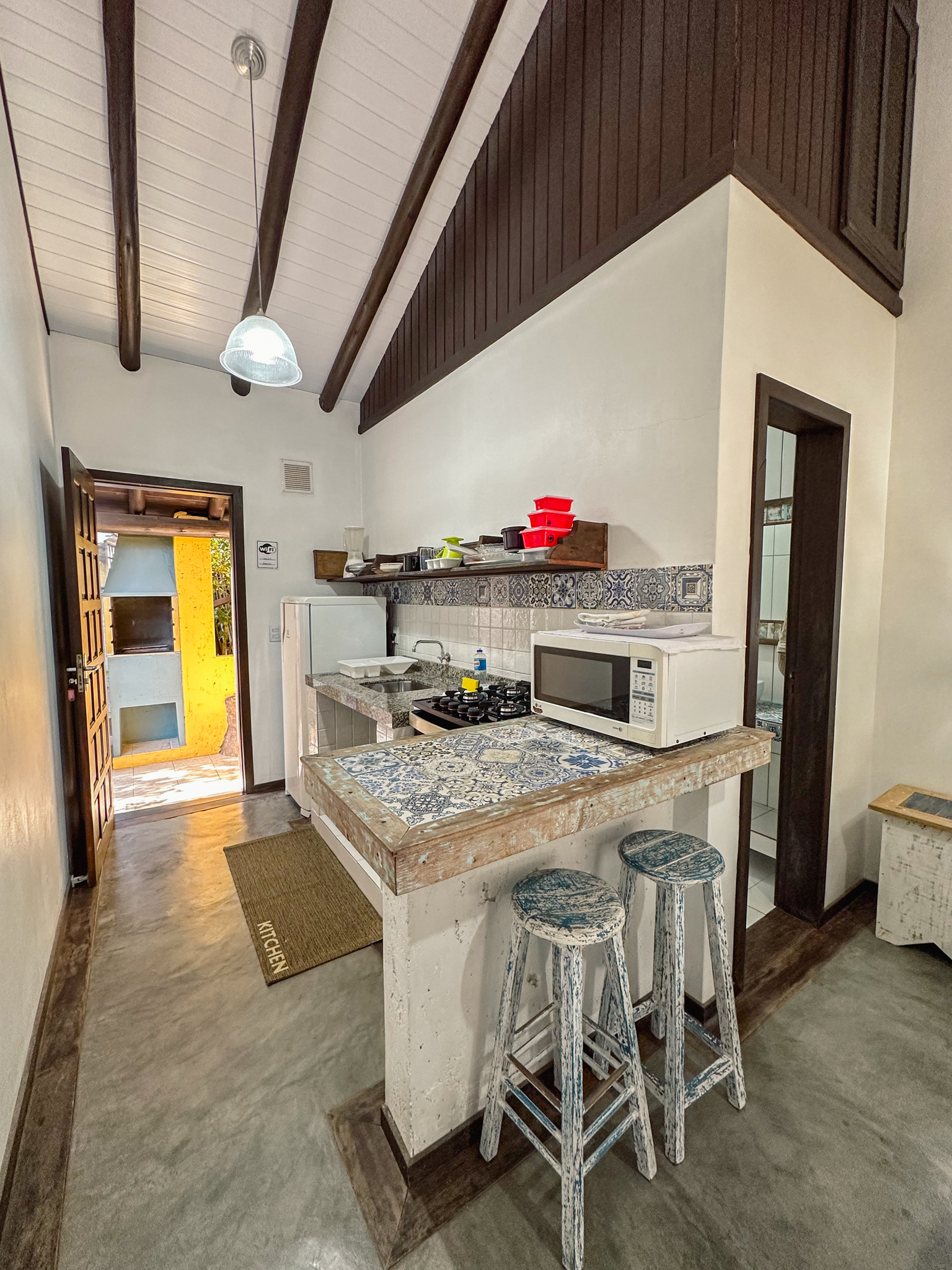 Além,de ser um lugar maravilhoso, é um local calmo, seguro, limpeza impecável. A infraestrutura dos chalés, é digna da nota 10...! Possui tudo, para uma boa estadia. Tv, Internet, Fogão, Geladeira, louças, panelas, torradeira, liqüidificador. Em fim, é só levar comida e a bebida. Os donos são pessoas muito queridas, Sra Mari e Sro Jaborá são maravilhosos anfitriões. É uma família calma e educadissimos. A vista do chalé ao mar da praia do Cardoso, é digna de Deus! super recomendo. Vale muito a pena, pousada é uma gracinha de charmosa.