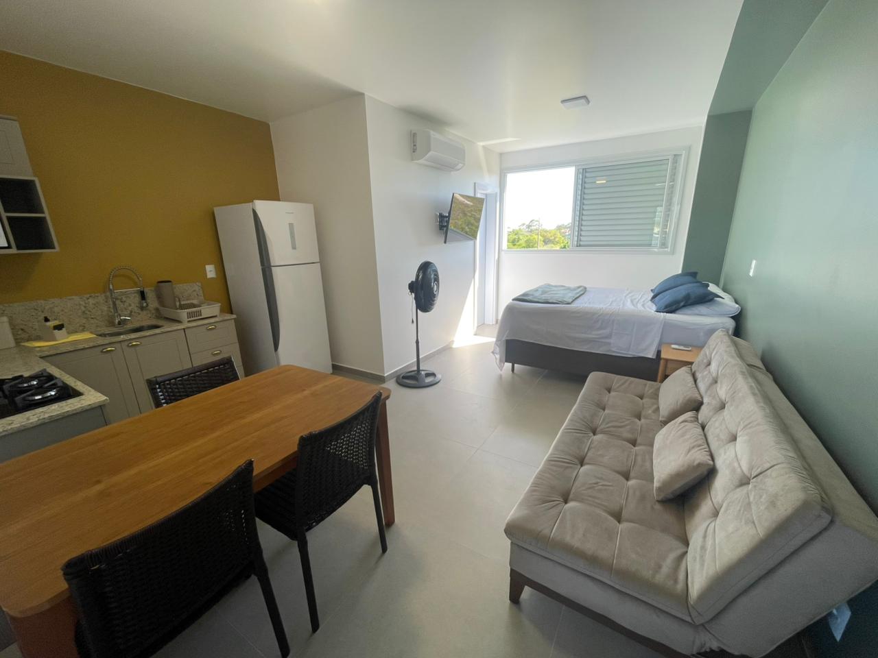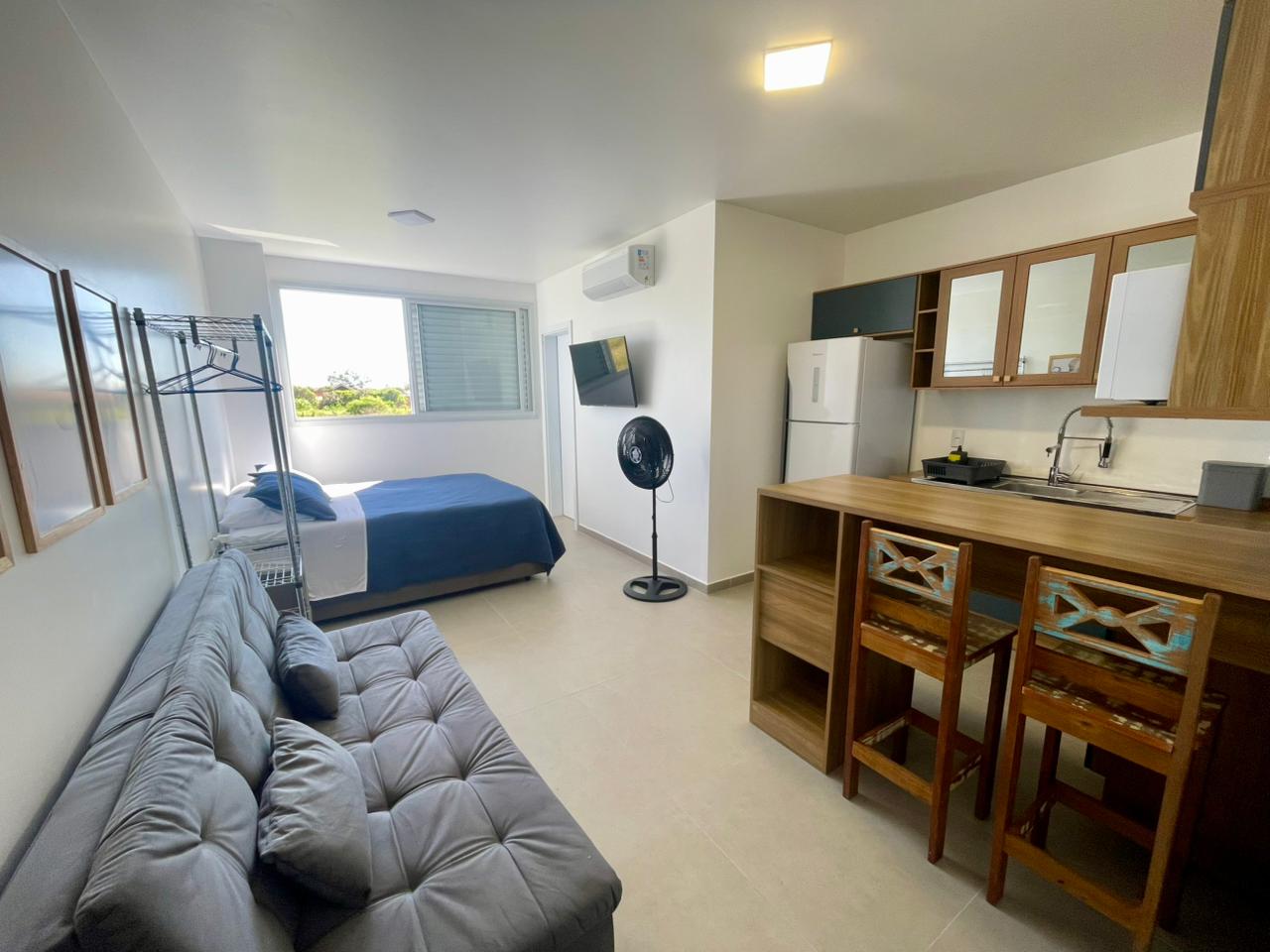 • Sacada privativa com blindex para os 2 stúdios, perfeita para descansar e aproveitar o momento